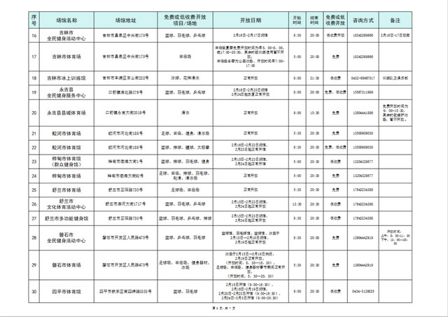 现将春节沐日历间,吉林省免费或低收费向社会公众绽放的各人指令场馆公示给专家。