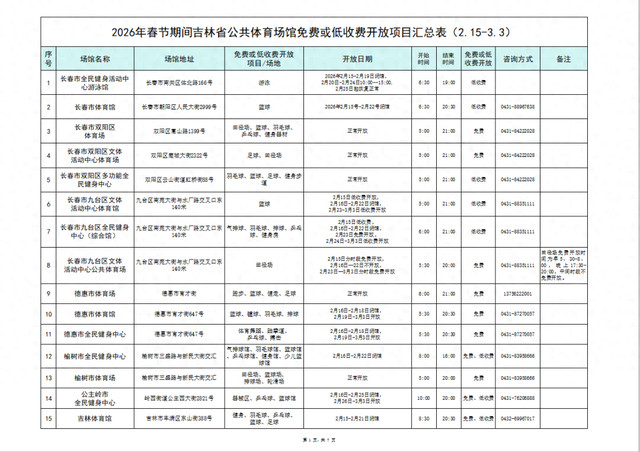 2月11日开云体育官方网站,吉林省体育局发布《2026年春节假期吉林省各人指令场馆免费或低收费绽放公告》,具体如下: