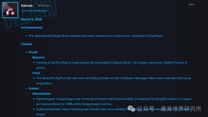 开云体育 魔兽宇宙: 3月6日在线热修! 哈籁尼尔传奇变为账号每周一次!