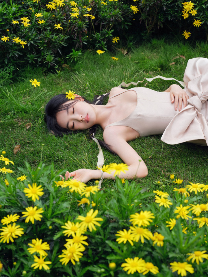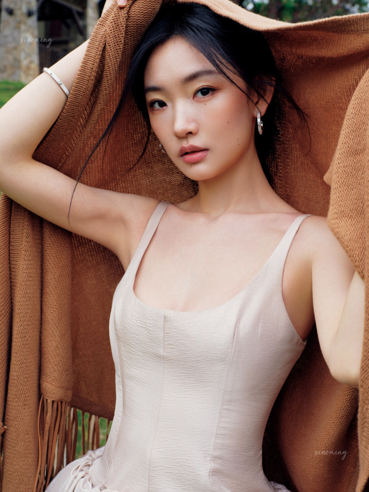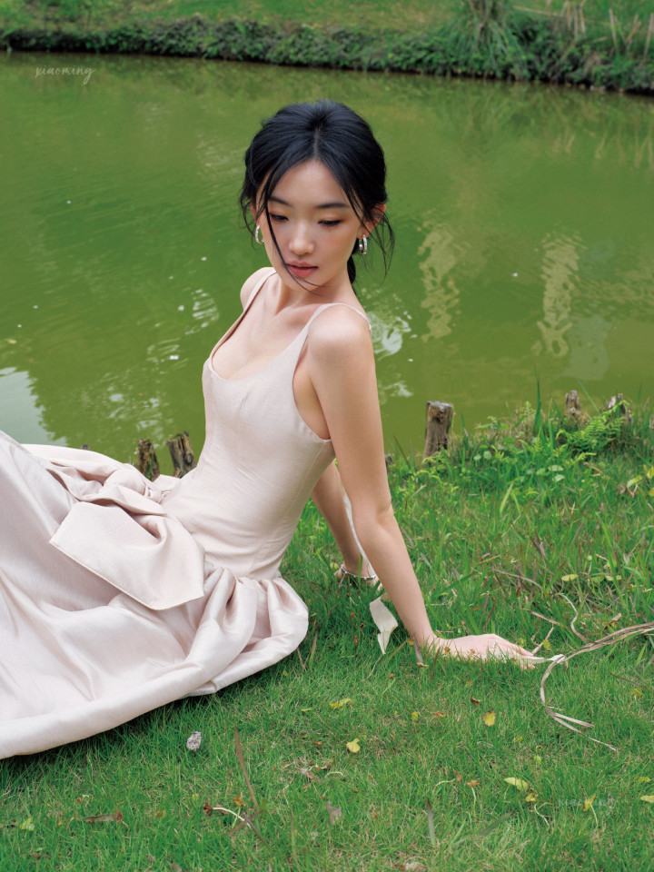 极简才是真高等!周也曾裸色裙勾画骨相之好意思,开云sports绿意里好意思到失语