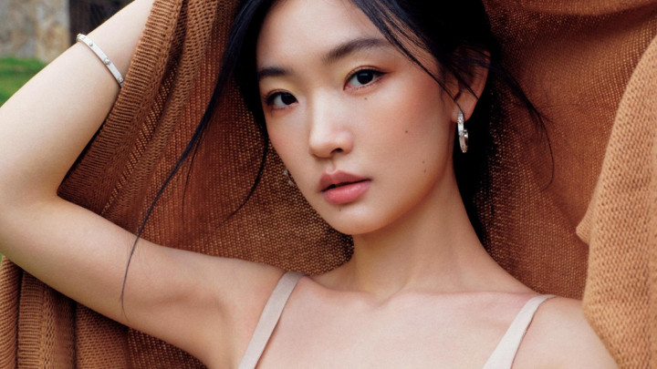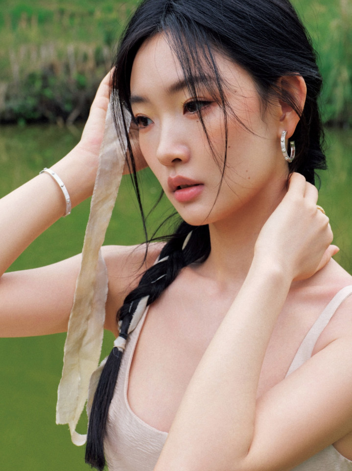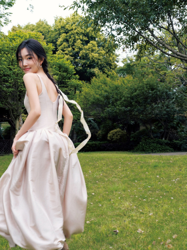 极简才是真高等!周也曾裸色裙勾画骨相之好意思,绿意里好意思到失语