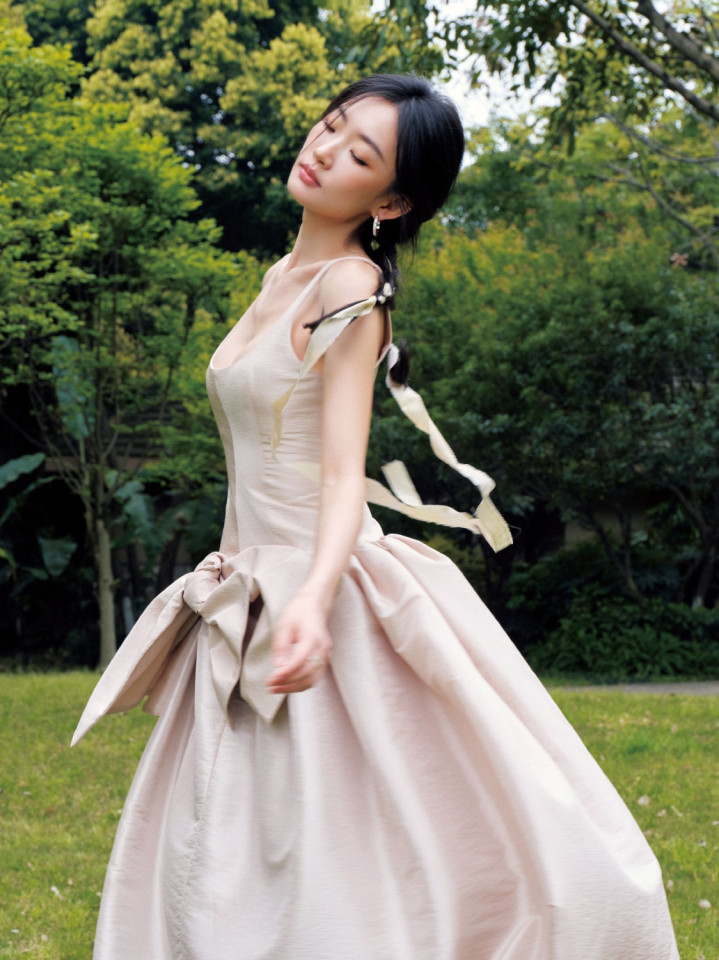 开云体育 极简才是真高等! 周也曾裸色裙勾画骨相之好意思, 绿意里好意思到失语