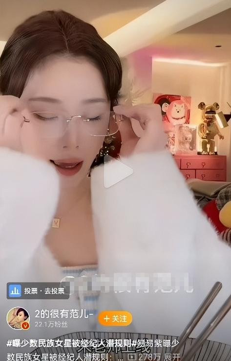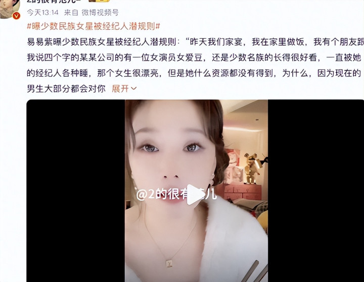 2月9号晚上,女网红易易紫开直播,聊着聊着,蓦地抛出一个猛料,直指一位少数民族女星,被牙东谈主潜划定陪睡。
