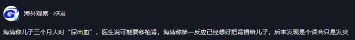 【1】2026年2月9日发布 国际不雅察《海清称男儿三个月大时“尿出血”,医师说可能要移植肾,海清称第一响应照旧思好把肾捐给男儿,自后发现是个诬蔑仅仅发炎》