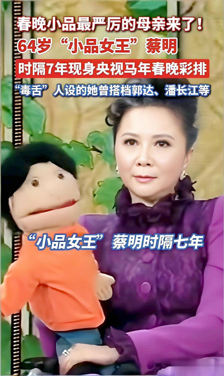 在本年的言语类板块,各人纯熟的小品女王蔡明,时隔七年再次回到春晚,不雅众们对她的呼声也很高。