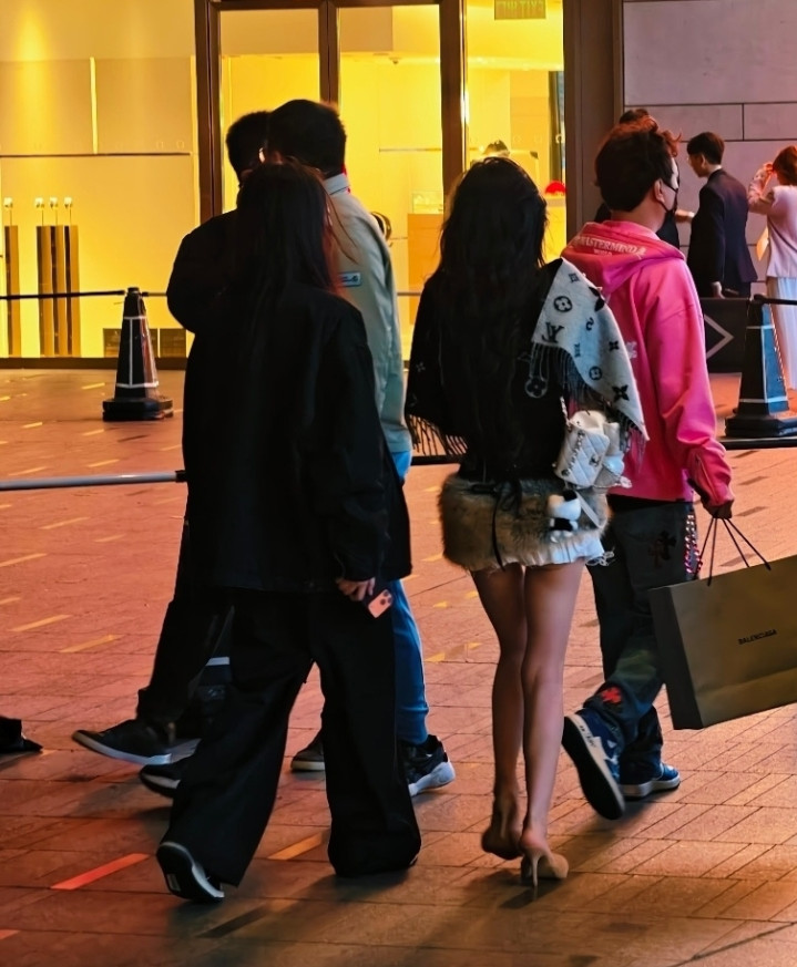 一条花哨的牛仔裤,搭配一件粉色卫衣,王念念聪倒显得颇有一颗“童心”。只见其一马率先冲在了最前头,手里拎着战利品,走路带风。死后紧随着女伴们,其中一个躯壳相称火辣,一稔牛仔超短裙,踩着高细跟,群众都很理会,一皆上莫得过多的相易,仅仅陪着王念念聪逛街。