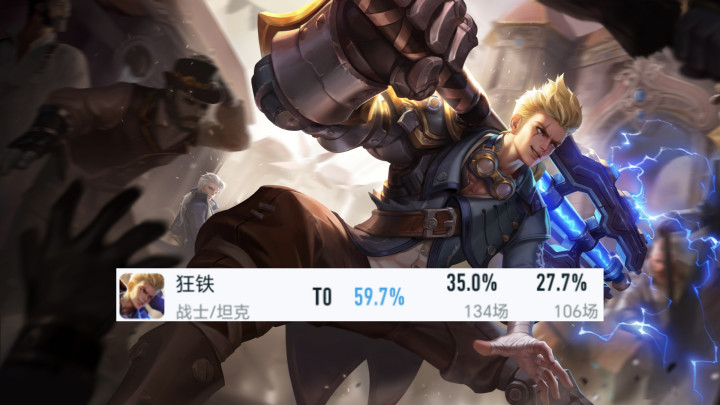 其实狂铁才是真王者,134场,是前面两个的三倍以上,胜率也有59.7%,离谱的是此前狂铁照旧减轻过输出流的,而在如斯高的出场率下,禁用率也达到了可怕的27.7%,这照旧狂铁吗?妥妥的老铁666啊。