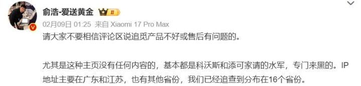 说句自制话,小雷看来,无论俞浩吐槽的“水军”是否果然和科沃斯计划,很难拿的出实锤的笔据,俞浩连着怒喷、暗指友商,照实有点太冲动;