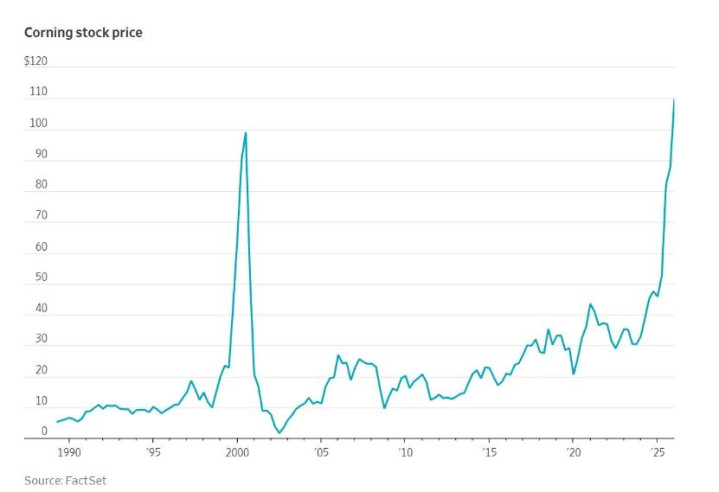 康宁股价当今正盘桓在历史高位隔邻,这收成于最近告示的一项与Meta结束的60亿好意思元条约,为其速即推广的AI数据中心阵列供应光纤电缆。康宁暗示正在与其他公司洽谈更多此类往返。它还在计划可能是其下一个关键举措的家具——不仅用于连合作事器,而是平直干预作事器里面的光纤。