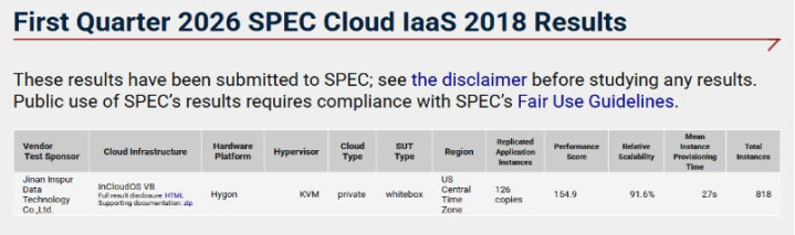 近日,国外巨擘组织SPEC公布SPEC Cloud IaaS 2018测试放手。基于海光C86架构处理器的行状器在波澜云海InCloud OS环境中取得国产厂商公开实测最高获利。