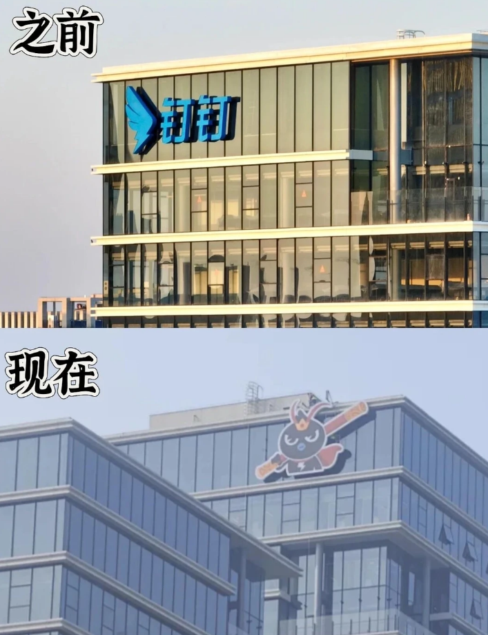 开云sports 钉钉大楼logo“换装”, 不想被飞书比下去