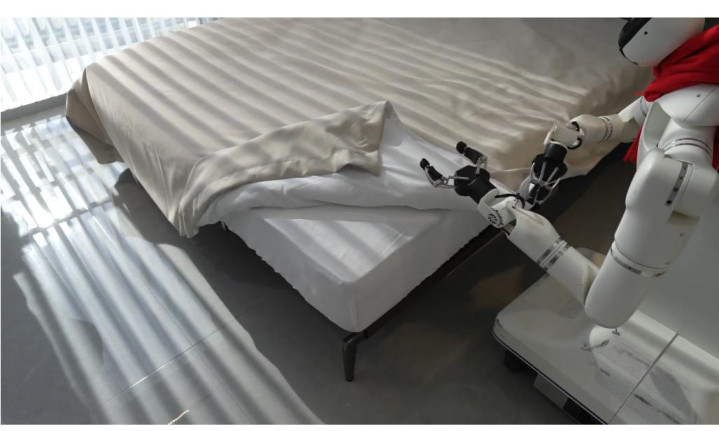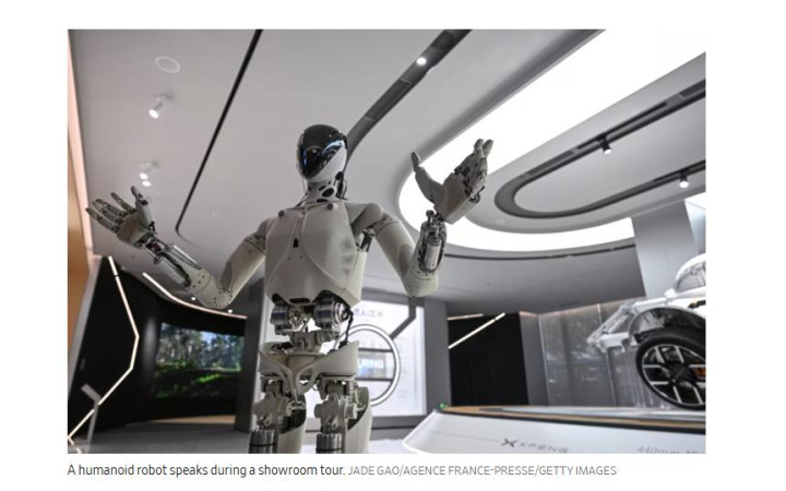 《华尔街日报》网站报说念截图:中国分娩的东说念主形机器东说念主演示整理床单