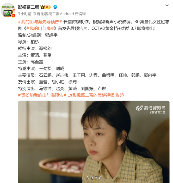 仅仅思要看上述两部剧还需要技术恭候,不如先将视野瞄准央视八套的新作《我的山与海》,网传将于3月7日登陆CCTV8黄金档。
