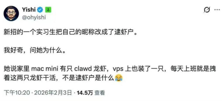 好多东谈主感谢他说:自从OpenClaw出身,我就获取了全新的身份,以致找到了责任,成为又名硅谷的「龙虾」。