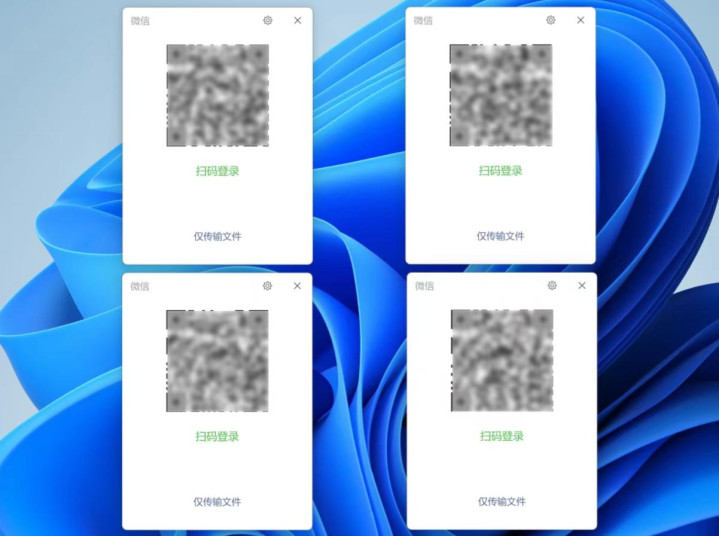从截图信息来看,被内测到的用户只需连结点击微信利用图标,这么将会弹出多个微信登录窗口,刻下同期最多复旧 4 个微信账号。