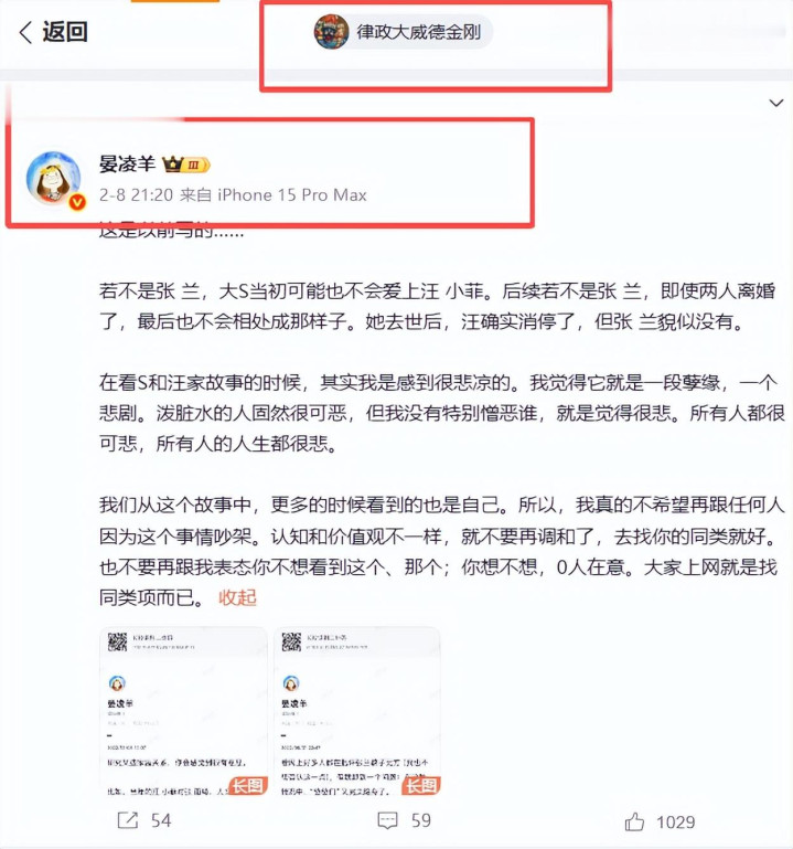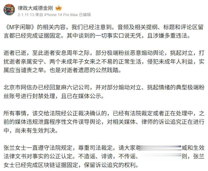 当作兰姐的代理讼师,按理说应该替她话语,后续还发布了一些质疑具俊晔的言论,
