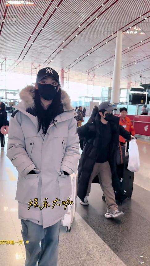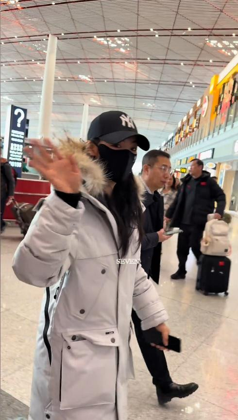 前几天还在红毯上穿红裙气场全开,记忆现身机场,就裹着大棉袄双手插兜,连妆皆没化。