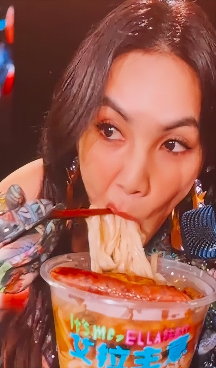 这场献技里,她还在舞台上上演嗦粉名地点,厚交粉和螺蛳粉接连登场,她毫无偶像背负地大口嗦粉,吃到尽兴时还直呼吃到厚交粉就有种回家的嗅觉。