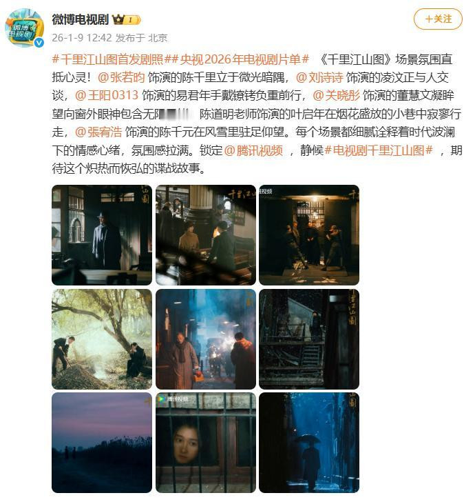 1月9日,由演员张若昀、刘诗诗主演的大型谍战片《沉山河图》剧组放出了他们的首波剧照。