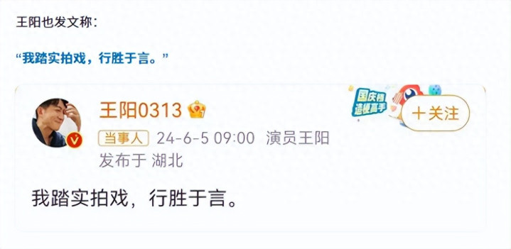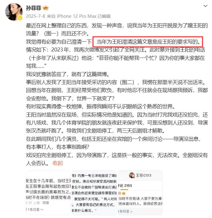 在孙菲菲往事重提不久,王阳便立马发文清醒。