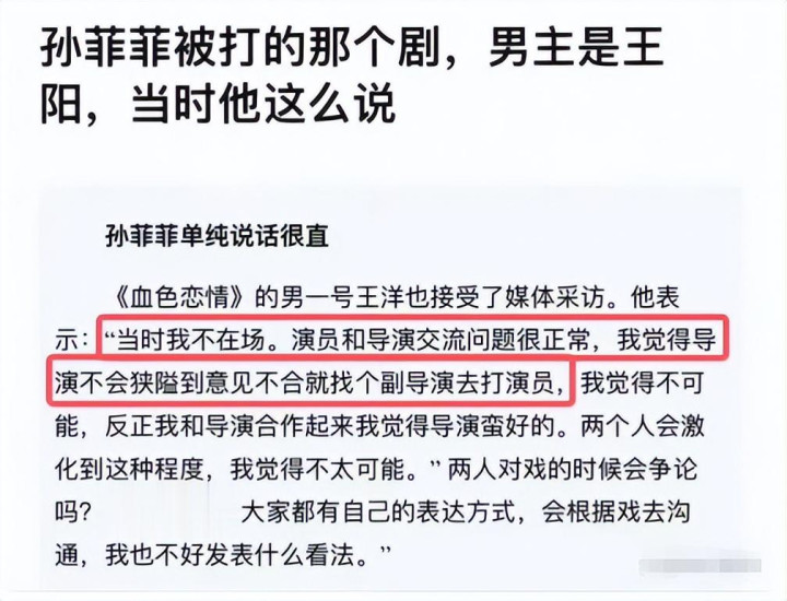 孙菲菲打抱顽抗此事,王阳也无可幸免地被“扯”下了水。