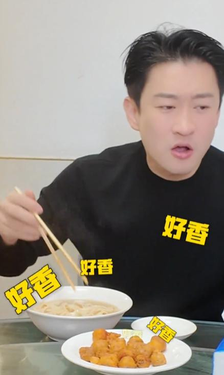 他和一又友打卡都都哈尔的闻明“十二忠手拉面”,一边嗦面,一边喊香,满脸抖擞。