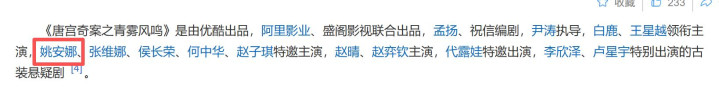更挖苦、更让不雅众心寒的是,去百度搜《唐宫奇案》的简介,姚安娜都在最前边。