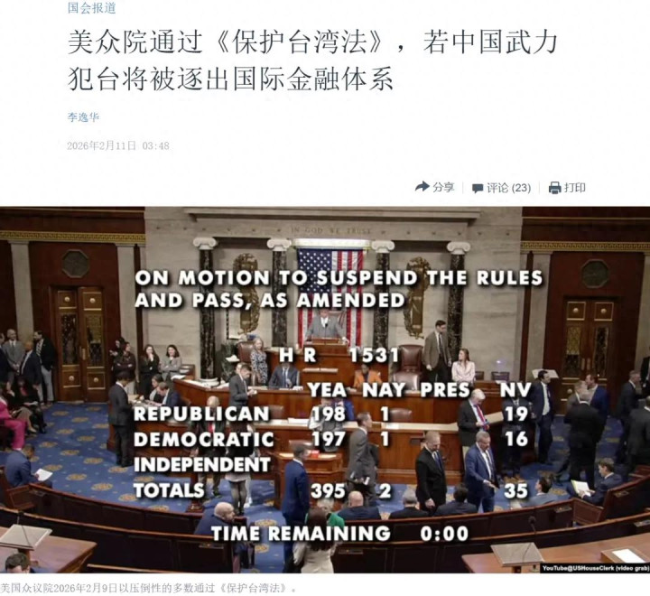 开云sports 395: 2! 好意思众院通过涉台恶法, 妄思把中国踢出大家金融体系
