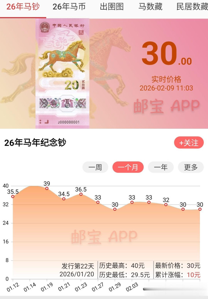 还有5天春节也将驾临,春节本领的行情会怎么样,咫尺亦然一个未知数,可是从2026年马年平时追悼币和追悼钞举座的市集热度来看还算不错,可是市集行情却出现了小幅着落。天然跟刚兑换的时候对比,咫尺市集热度也如故下降了好多。