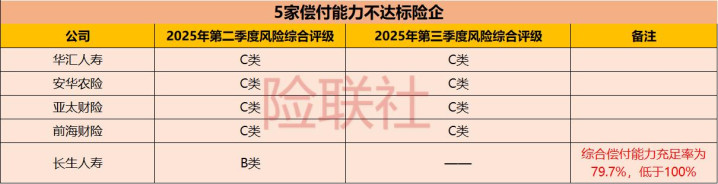 让东谈主关爱的是,有5家保障公司没能通过监管“训诫”,其中4家栽在风险评级上,1家卡在资金迷漫率上,触及华汇东谈主寿、安华农业保障、永生东谈主寿、前海财险和亚太财险。