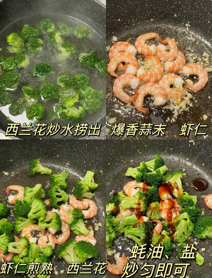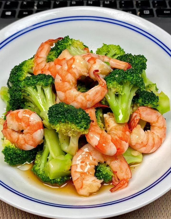 高卵白、低脂肪,养分足又顶饱。西兰花清肠刮油,虾仁鲜活不腻,少油快炒,减脂期也能吃得很香。