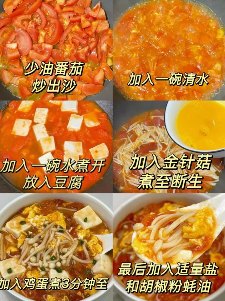 4、番茄金针菇豆腐汤