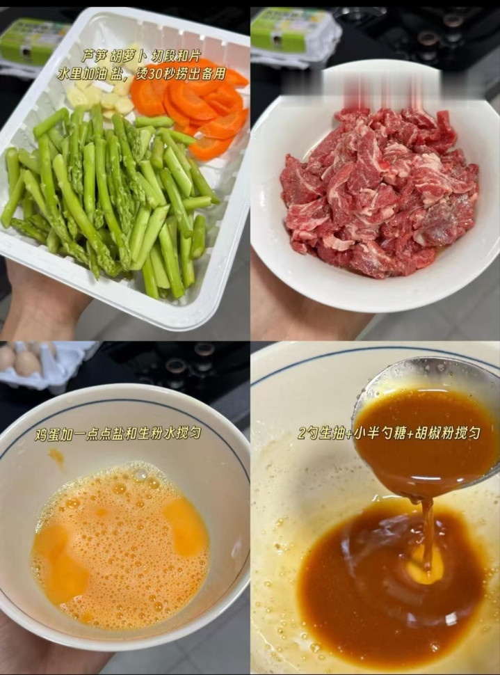 1、芦笋牛肉滑蛋