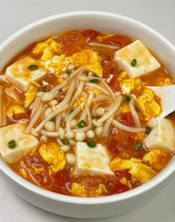 酸甜开胃、低脂高纤,热量低、养分全。番茄开胃助消化,金针菇促进肠说念蠕动,豆腐补充植物卵白,清淡暖胃,减脂期超合乎。